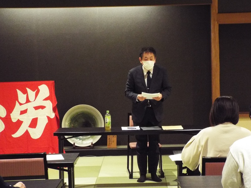 | ■と き:2023年11月24日(金)18:30〜 ■ところ:会津若松市「労働福祉会館2階会議室」 ○参加者:13単組19名 (関連会議) ○会津総支部第8回執行委員会 ○会津総支部労働講座 講師:県職連合 佐藤中央執行委員長、川村書記次長 |