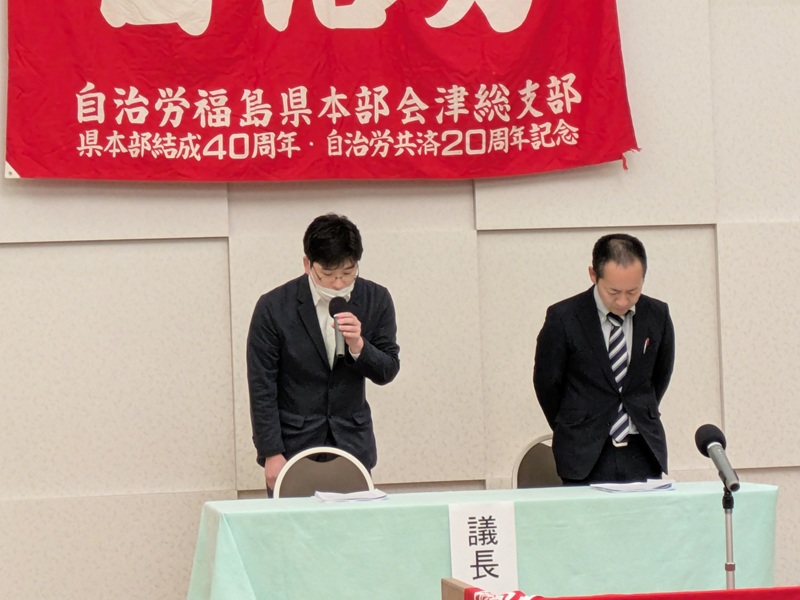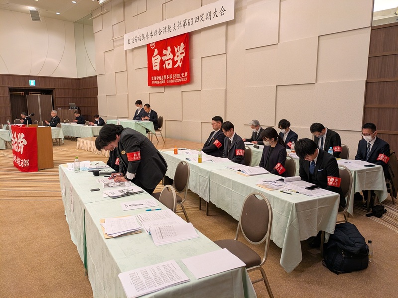 | ■と き:2024年3月9日(土)13:00〜 ■ところ:「会津若松ワシントンホテル」 ○参加者:17単組76名 ■関連会議等 ○10:00〜総支部執行委員会 ○18:00〜新旧役職員激励会・単組交流会 「会津若松市 ホテルニューパレス」 |